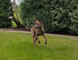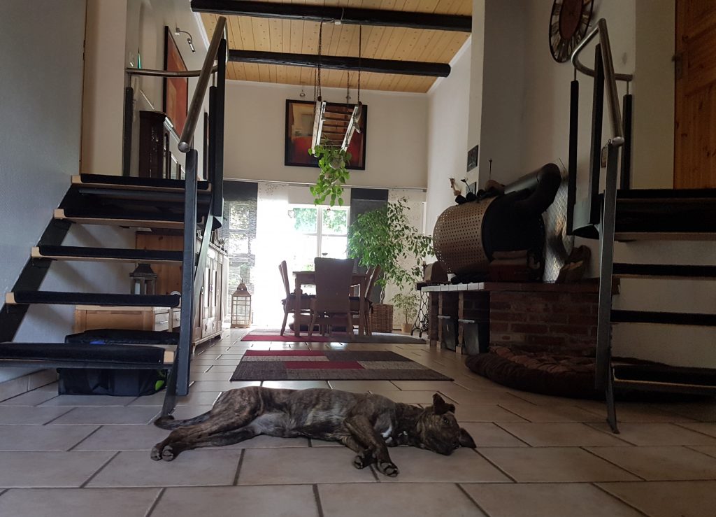 Irgendwas ist hier komisch… Hier stehen zwei Körbchen zum Schlafen. Hier stehen zwei Näpfe fürs Fressi, hier stehen zwei Näpfe mit frischem Wasser, hier gibt es zwei Plätze, an denen man aus dem Fenster schauen kann, aber das schwatte Mädel wohnt doch alleine hier… sehr seltsam. Ob die vielleicht… Ahhhhhh! Ich falle um, das ist ja eine… eine… das ist ja eine ganze Kiste voll mit Teddys, mit Wurfseilen, mit Bällchen… Okay, jetzt weiß ich’s. Ich bin aus Versehen über die Regenbogenbrücke gegangen und im Hundeparadies gelandet. Nur so kann es sein. Wie konnte das denn passieren? Vielleicht hätte ich nicht… Ähm, Moment mal. Die Tür zum Garten ist noch auf. Darf ich durchgehen und noch einmal in den Garten? Darf ich? Darf ich bitte? Juhuuu! Und wieder rein? Und wieder raus? Und noch einmal rein? Und noch einmal raus? Ich darf mich hier ganz frei bewegen und rein- und rausgehen, wann ich möchte? Ohhhh…. Penny, du hast es so gut hier!