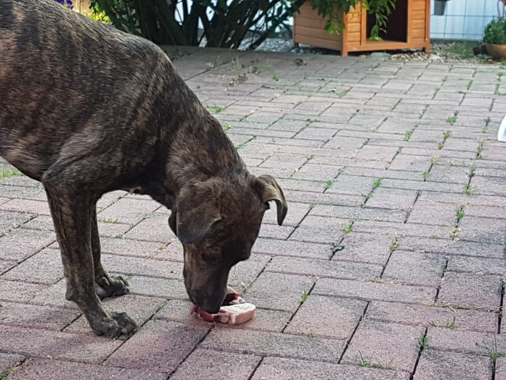 (Eine Stunde später). So, ich bin wieder in dem Riesenhaus mit dem Megagarten. Wenn ich aber zum Abendessen wieder bei Pflegepapa und Whisky sein will, müssen wir aber bald los. Die vermissen mich bestimmt schon total. So wie ich sie. Ihr seid ja ganz nett und hier gefällt es mir super, ich komme euch auch bestimmt bald wieder besuchen, aber… ist das Fleisch? Okay, ein paar Minuten habe ich noch.