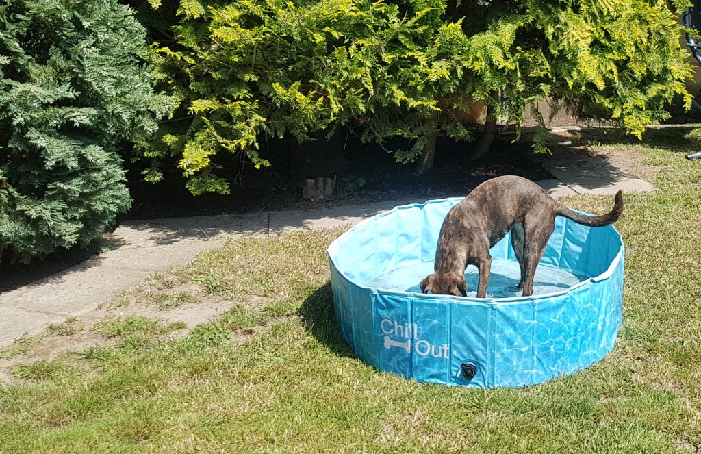 Ich gucke erst einmal, ob… Was ist denn DAS!? Ich glaube, ich falle um! Das ist aber ein schöner Garten! Oh Mann, ich muss mir alles anschauen. Ein Rasen zum Rennen und ganz viele Büsche und Ritzen, die man erkunden kann. Und alles riecht gut! Ist das ein Pool? Moment, ich mache mal kurz eine Arschbombe… Ja, ist ein Pool. Aber noch kein Wasser drin. Trotzdem grandios!