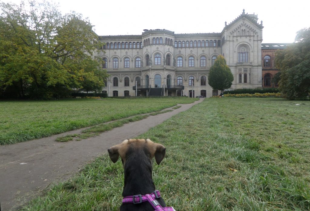 Na ja, wenn er mich so gar nicht lieb hat und mich tagsüber gar nicht bei sich haben will, schauen wir mal, wie es bei Frauchen aussieht. Die arbeitet an der Universität. Hmmm, ich bin hochintelligent. Das passt doch schon mal ganz gut. Frauchen hat ein eigenes Büro. Ich habe zwar noch ein kleines Pipi-Problem, aber Frauchens Büro hat einen Linoleumboden. Hört sich vielversprechend an.