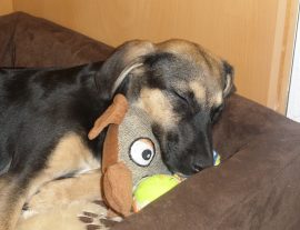 Nach einigem Hin und Her kamen meine Menschen dann überein, dass es vielleicht gar nicht so gut sei, wenn ich den ganzen Tag vom Rudel getrennt sei. Das könnte sich negativ auf unsere Bindung auswirken. Sachte Frauchen. Also haben wir überlegt, ob ich einfach einen der Menschen bei seinem Job unterstütze. Den Großen zum Beispiel… Den ganzen Tag unterm OP-Tisch liegen und darauf warten, dass was runterfällt, hätte mir gefallen. Aber das geht angeblich nicht. Hygiene und so. Das mit der Hygiene hatte er doch schon mal angebracht und innerhalb von Nanosekunden wieder verworfen, als ich meine heutige Familie das erste Mal besucht hatte, erinnert ihr euch? (Da ist sie, unsere Penny!)